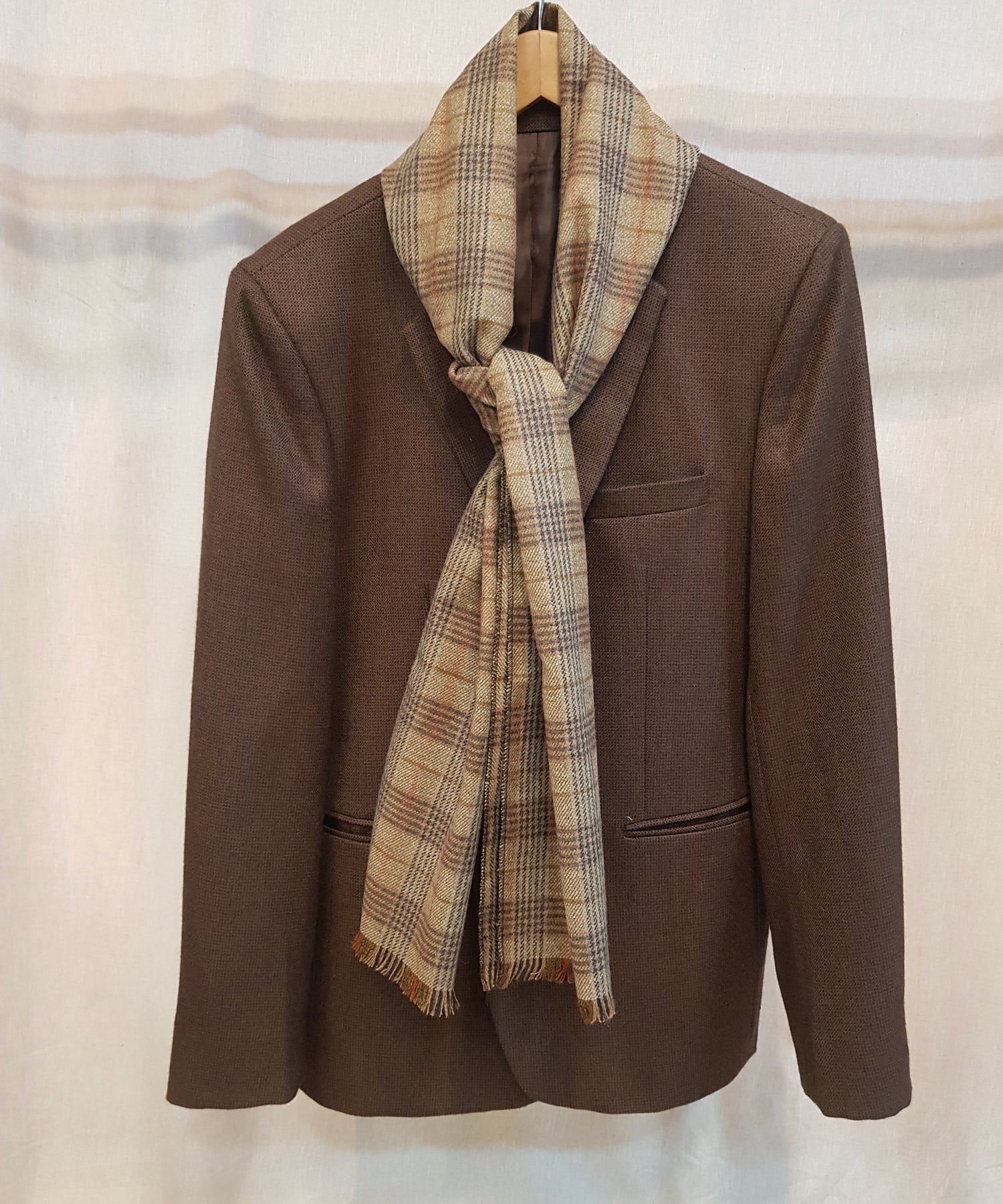 Warm Tan Plaid Single Layered Woollen Tweed Scarf