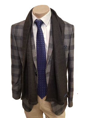 Black & Dark Grey Herringbone Tweed Scarf
