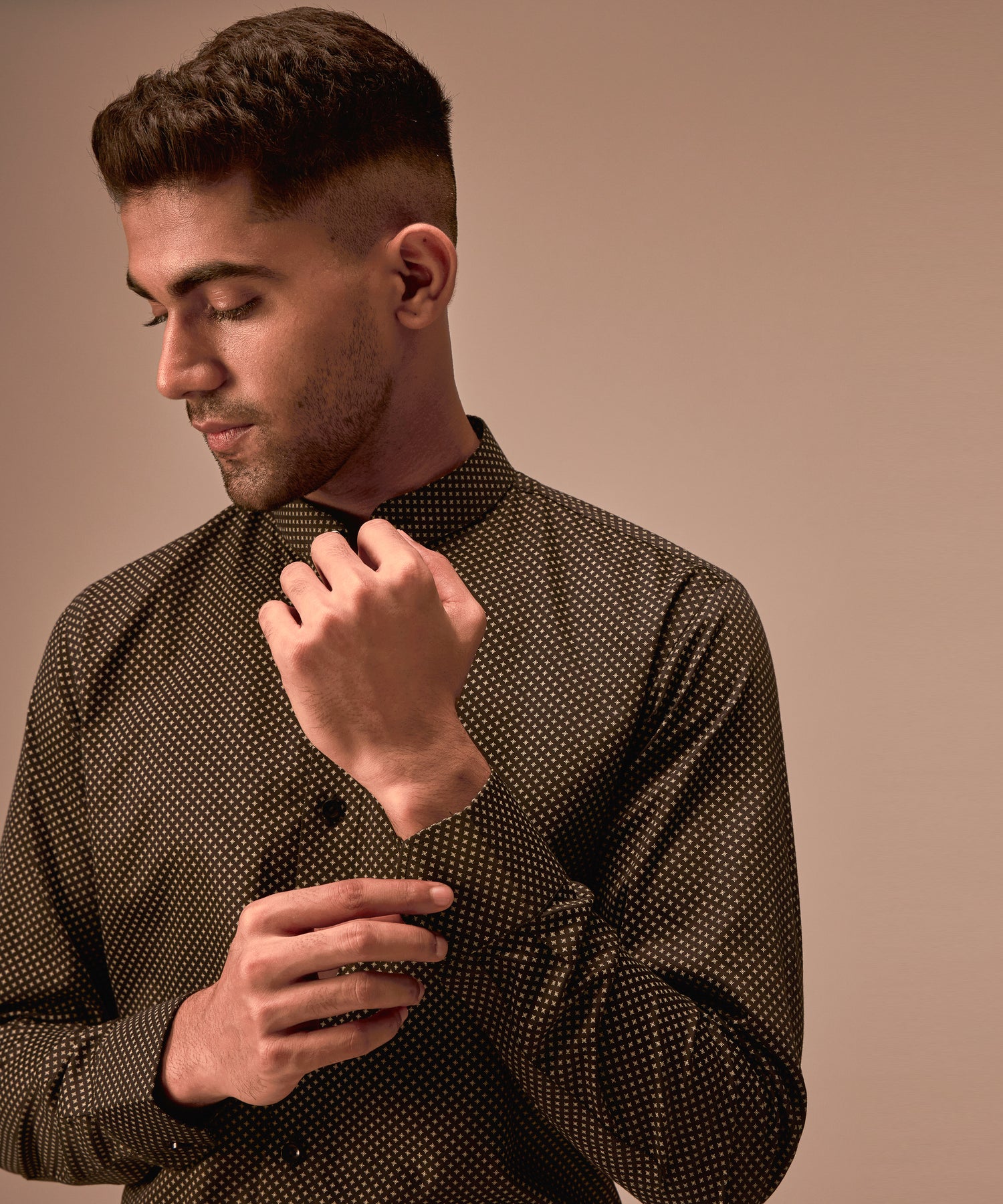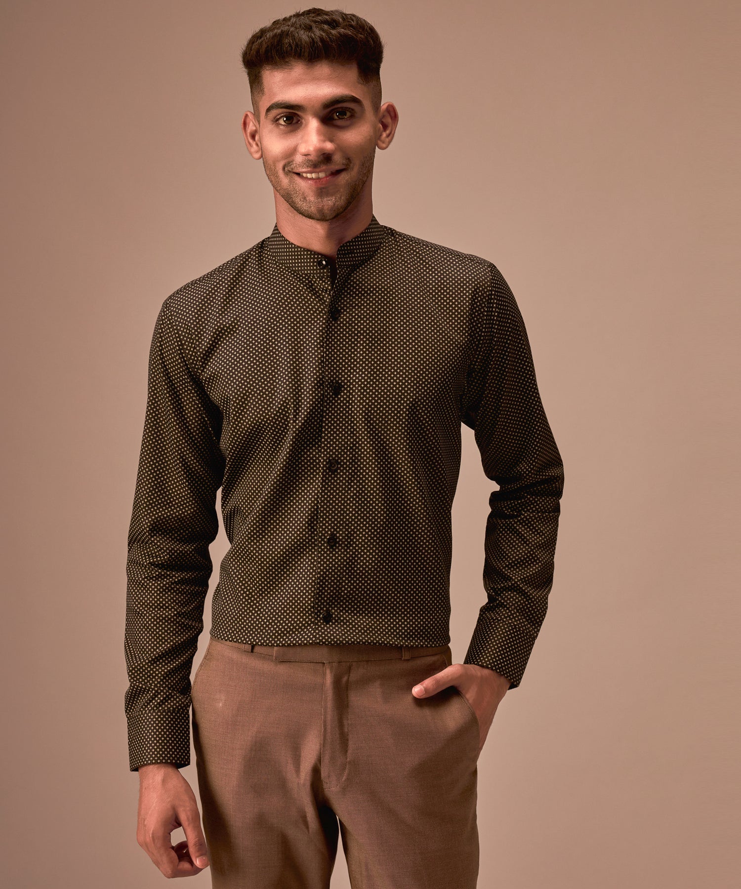 Men's Black Patterned Dressy Giza Cotton Shirt