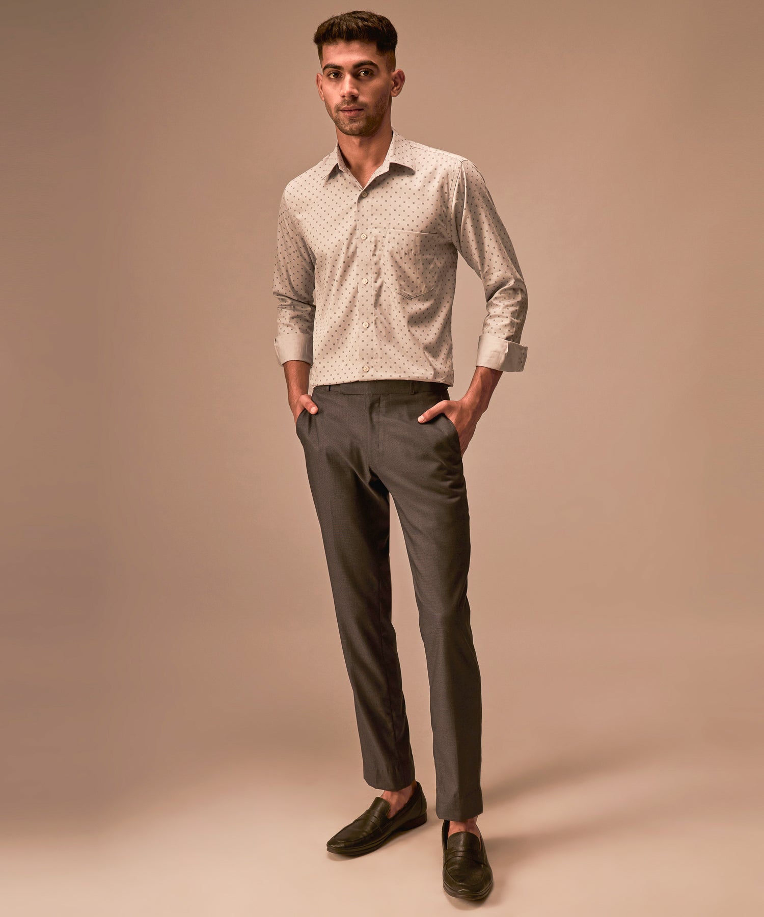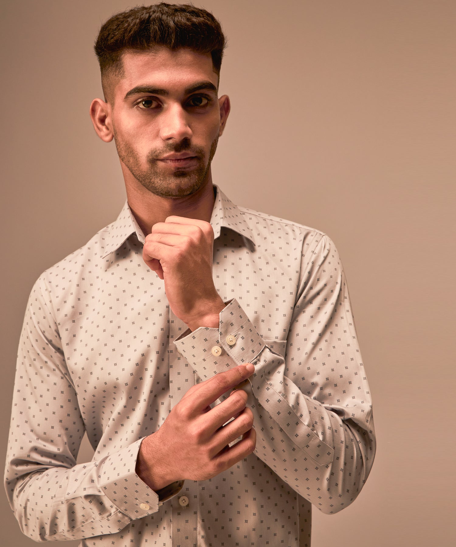 Men's Grey Patterned Dressy Giza Cotton Shirt