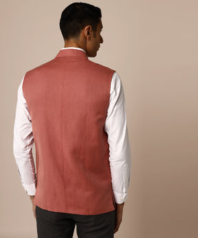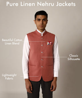 Pink Pure Linen Nehru Jacket
