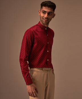 Men's Maroon Patterned Dressy Giza Cotton Shirt