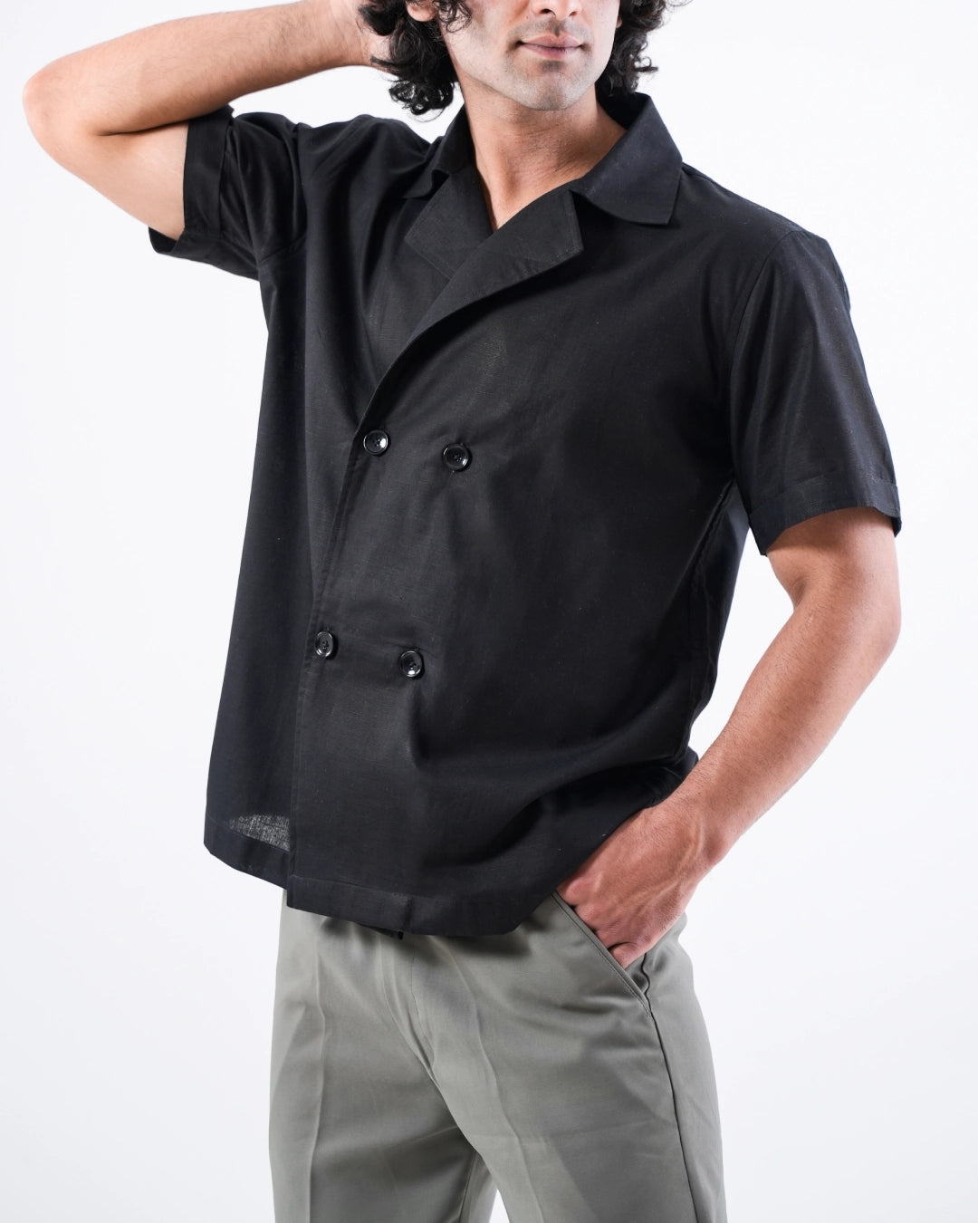 This double-breasted shirt design features sharp clean lines and a tailored fit to make the garment sit perfectly on you. The cotton linen blend fabric offers exceptional breathability and natural temperature regulation, keeping you comfortable throughout the day. Perfect for both casual outings and semi-formal occasions, this versatile piece combines the relaxed comfort of a tee with the sophisticated structure of a shirt.