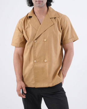 This double-breasted shirt design features sharp clean lines and a tailored fit to make the garment sit perfectly on you. The cotton linen blend fabric offers exceptional breathability and natural temperature regulation, keeping you comfortable throughout the day. Perfect for both casual outings and semi-formal occasions, this versatile piece combines the relaxed comfort of a tee with the sophisticated structure of a shirt.