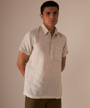 Beige men's linen casual shirt