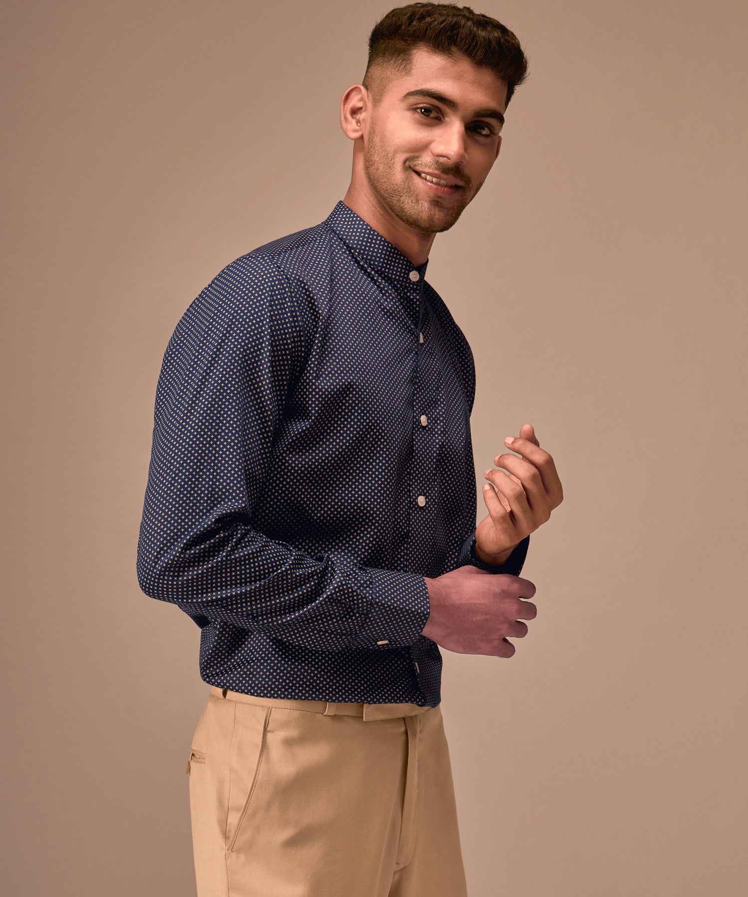 Men's Blue Patterned Dressy Giza Cotton Shirt