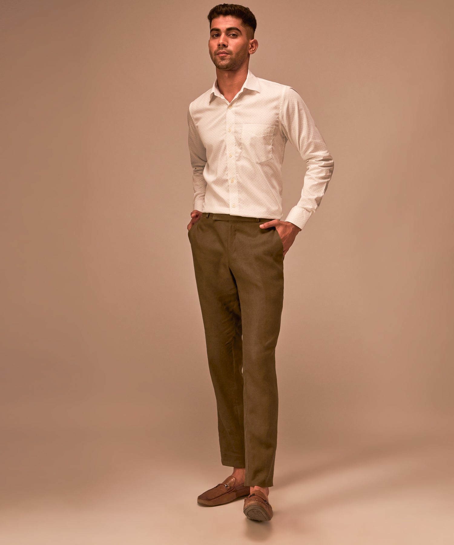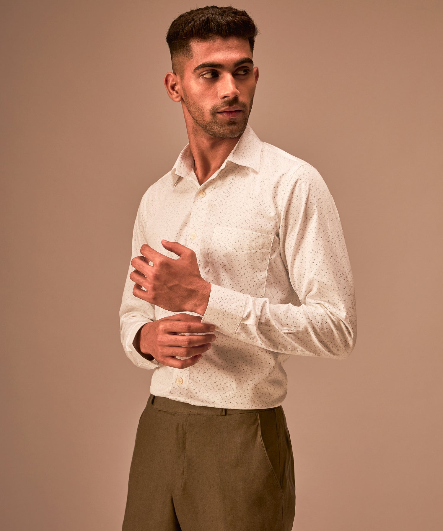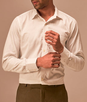 Men's White Polka Dot Dressy Giza Cotton Shirt