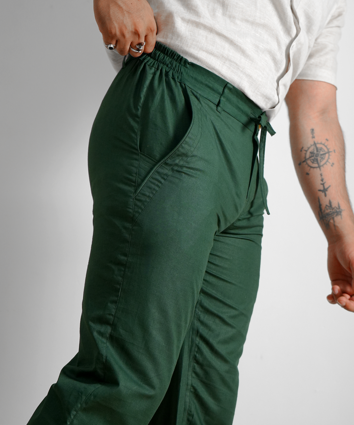 Forest Green Cotton Linen Leisure Pants