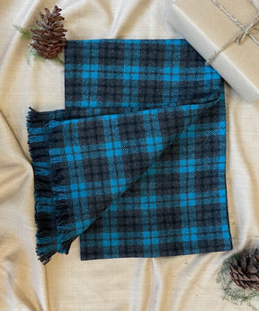 Charcoal Blue Plaid Woollen Tweed Scarf