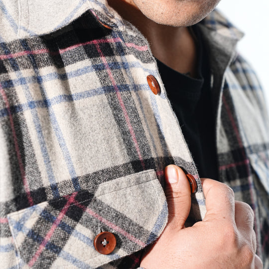 Crafted with a heritage tweed wool & recycled poly , for the colder months, this overshirt features double insulation fabric to keep you cozy and comfortable, whether you’re outdoors or indoors.