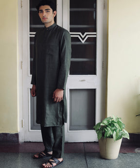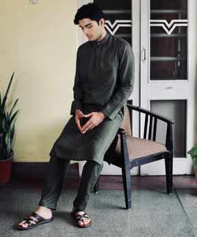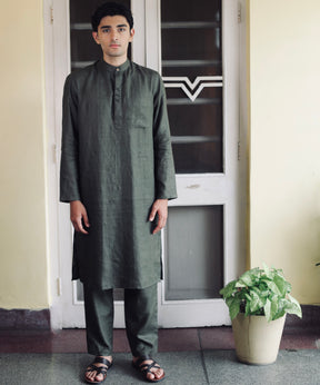 Majestic Moss Linen Kurta Pyjama Set